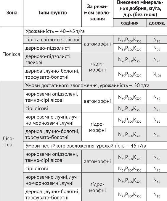 Таблиця 2. Орієнтовані дози внесення мінеральних