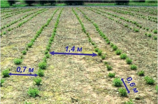 Проаналізувавши недоліки та переваги відомих закордонних технологій, а також врахувавши ґрунтово-кліматичні умови України та традиційну для нашої країни систему машин, зорієнтовану на міжряддя 70 см, пропонується технологія вирощування енергетичної верби з шириною міжрядь між смугами а=1,4 м та шириною міжрядь у смузі b=0,7 м (рис. 1).