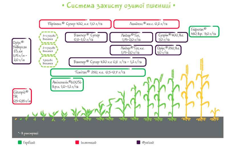 За свідченням експертів, якщо розраховувати «внесок» різних частин рослини озимої пшениці (2–3-4 листок, прапорцевий листок, колос), то культура вимагає мінімум три, а оптимально чотири фунгіцидних обробки для забезпечення максимального за кількістю та якістю урожаю.