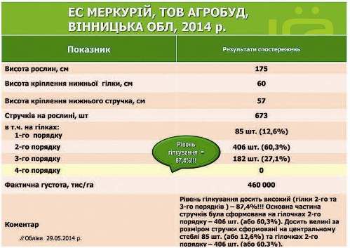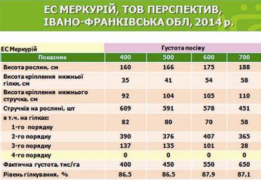 - ЕС Меркурій — 350 000–450 000 насінин/га