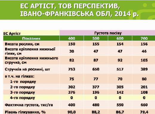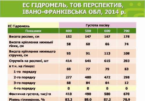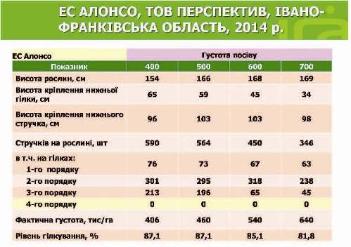 Гібриди «Євраліс Семенс» можна умовно поділити на дві груп: перша — які можуть бути посіяні із більш високою густотою — ЕС Гідромель та ЕС Нептун (500 000 насінин/Га) та гібриди, яким густота під час посіву повинна бути зменшена — ЕС Меркурій — 350 000–450 насінин/га, ЕС Алонсо та ЕС Дануб — 400 000 насінин/га. Остання група вирізняється дуже високим рівнем гілкування!