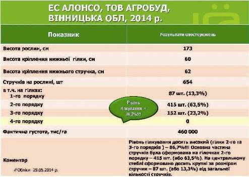 Серед новинок «Євраліс Семенс» на сезон 2014–2015 рр. пропонує гібриди ЕС Меркурій, ЕС Алонсо та ЕС Дануб.