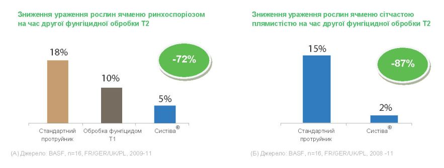 Рис. 1. Вплив Систіва® на зниження ураження рослин ячменю
