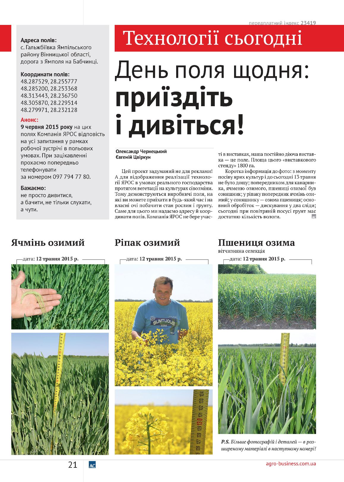 Цей проект задуманий не для реклами! А для відображення реалізації технології ЯРОС в умовах реального господарства протягом вегетації на культурах сівозміни. Тому демонструються виробничі поля, на які ви можете приїхати в будь-який час і на власні очі побачити стан рослин і грунту. Саме для цього ми надаємо адресу й координати полів. Компанія ЯРОС не бере участі в виставках, наша постійно діюча виставка - це поле. Площа цього «виставкового стенду» 1800 га.