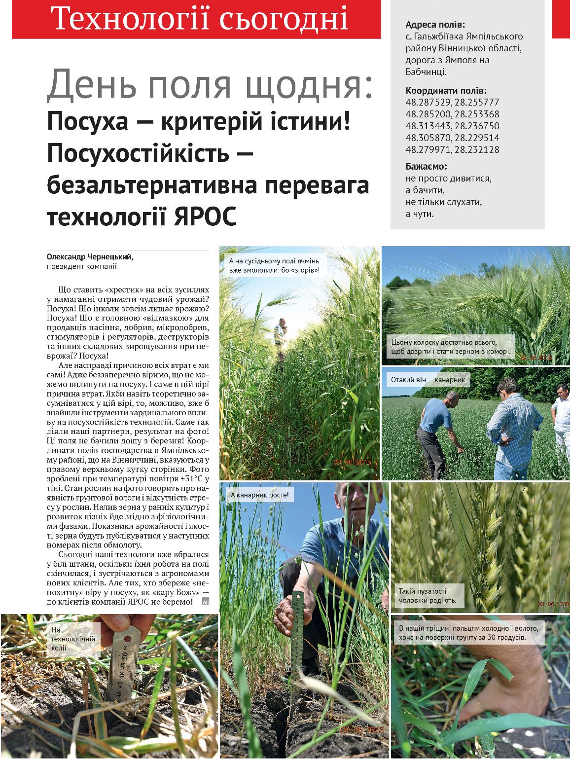 День поля щодня: Посухостійкість — безальтернативна перевага технології ЯРОС