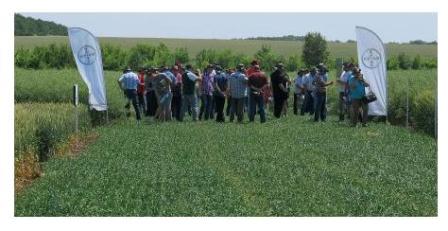 Демонструємо типові культури для цієї зони. Колись навіть була картопля, але зараз у цій місцевості її мало хто вирощує. Особливістю є погодний фактор: вже кілька років поспіль не щастить з вологою, опадів дуже мало. Доводиться працювати з нашими препаратами в екстремальних погодних умовах. Колеги з півдня та сходу до такого вже звиклі, а нам доводиться коригувати дію наших продуктів. Особлива відповідальність перед сусідами, у яких умови аналогічні. Вони не мають можливостей для досліджень, тому сподіваються на наші підказки, акцентування на деталях. Їм теорію не розповіси — вони бачать все на практиці.