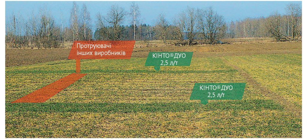 Рис. 2. Ефективність застосування Кінто® Дуо, 2,5 л/т порівняно