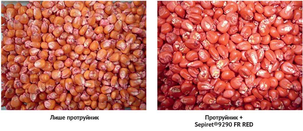 Для зменшення пилоутворення протруєного насіння при зберіганні та сівбі, а також для покращення його плинності і зовнішнього вигляду можна використовувати барвники з полімером Sepiret® (рис. 5).
