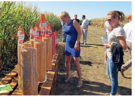 Чарівне сортове колесо вмістило 16 гібридів кукурудзи. На початку кола густота становить 33 тис. рослин/га, а у центрі сягає 250 (!) тис. рослин/га (де б іще побачити таку кукурудзу!). І ще одна витребенька: посіяні вони не традиційно за ФАО, а за сторонами світу: з півночі — найбільш ранні гібриди, з півдня — найпізніші. Приміром, новинка з найбільшим ФАО 400 гібрид КРЕБС посіяний суворо на південь.