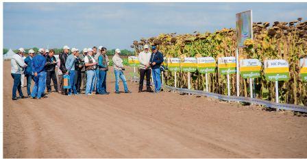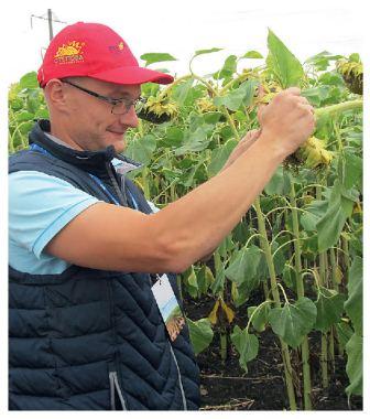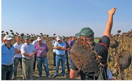 Ділянки усіх агроценрів демонструють повний набір соняшників компанії «Сингента» — 30 відомих і зовсім нових гібридів. Дмитро Нерода, портфоліо-менеджер з олійних культур у країнах СНД компанії «Сингента» розповідає, як довго і важко кожен із них долає шлях до агараріїв, відточуючи необхідні характеристики: «Часом дуже гарні гібриди маскуються під таких собі скромників на ділянках, а після збирання на вагах змушують ахнути, показуючи високі результати».