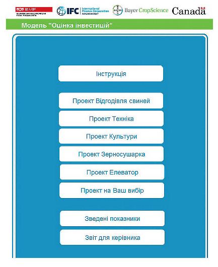 Приймаючи рішення інтуїтивно, є ризик обрати проект, окупність якого треба буде чекати роками, чи який не зможе бути завершений через недостатність фінансування. Модель «Оцінка інвестицій» містить вже готові шаблони для аналізу 5 типових інвестиційних проектів у сільському господарстві методом дисконтованих грошових потоків: купівля техніки, інвестування в зерносушарку, проект елеватор, проект з відгодівлі свиней, вирощування культур.