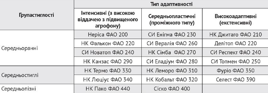 Підбір гібридів кукурудзи за скоростиглістю та типом адаптивної здатності