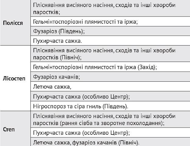- стеблових гнилей, гельмінтоспоріозу, пухирчастої та летючої сажок (Неріса, НК алькон, СИ Енігма, СИ Новатоп, СИ Топмен, СИ Вералія, СИ Аріосо, НК Канзас, НК Люціус, НК Пако);
