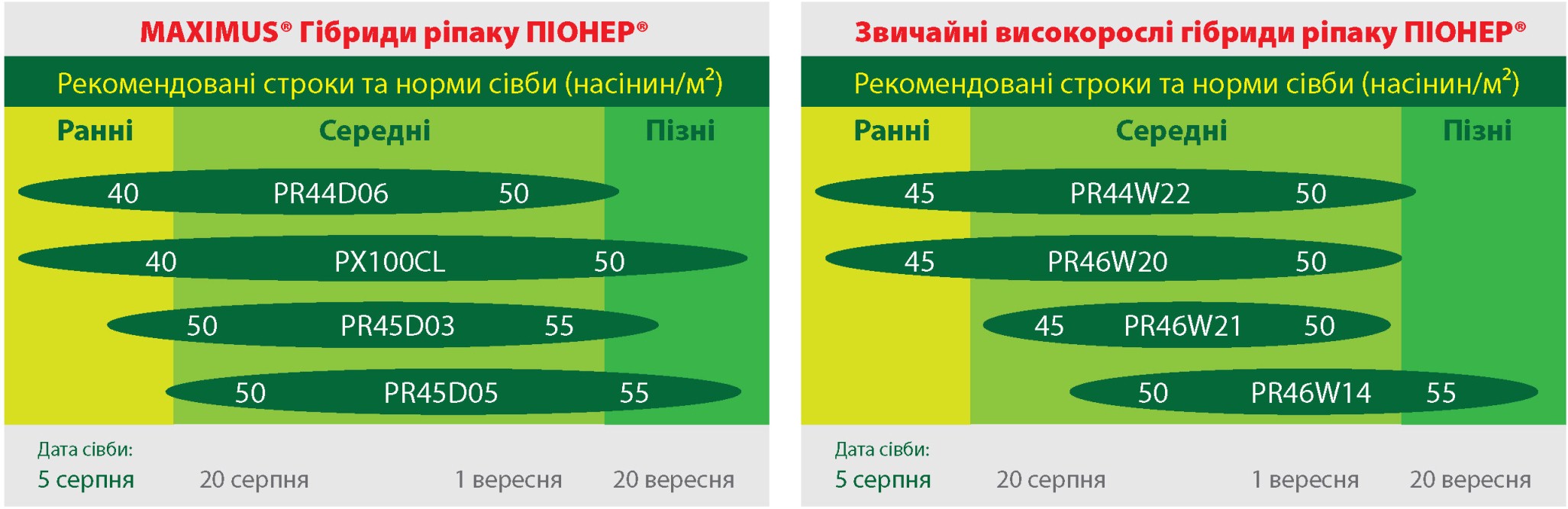 які можуть різнитися для різних гібридів (сортів) озимого ріпаку