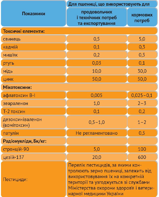 У ПШЕНИЦІ ТОКСИЧНИХ ЕЛЕМЕНТІВ І МІКОТОКСИНІВ, мг/кг