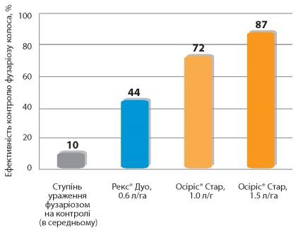 Рис. 5. Ефективність контролю фузаріозу колоса фунгіцидом Осіріс® Стар,