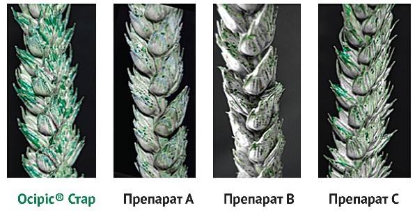 Саме з цих причин Осіріс® Стар легко утримуватися на вертикальній поверхні колоса, яка покрита товстим шаром воску, та рівномірно перерозподілятися по ній.