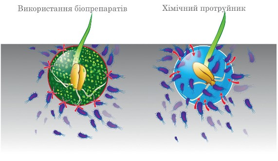 Що стосується обробки насіння, то хімічні протруйники призводять до знищення мікрофлори як самої зернівки, так і грунту навколо, тобто рослина знаходиться у біологічному вакуумі.
