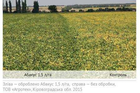 В 2015 році в умовах Полтавщини, Рівненщини та Харківщини застосування фунгіциду Абакус® (1,5 л/га) у фазі бутонізації (BBCH 51) для контролю хвороб у посівах сої забезпечило прибавку урожаю насіння від 9 до 33 %. Поряд із цим використання цього фунгіциду на фоні передпосівної обробки насіння, яка включала також продукти компанії BASF — інокулянт ХайКот Супер Соя 1,42 л/т + Екстендер 1,42 л/т та протруйник Стандак® Топ (1,0 л/т), прибавка врожаю насіння досягла 26-46 %.