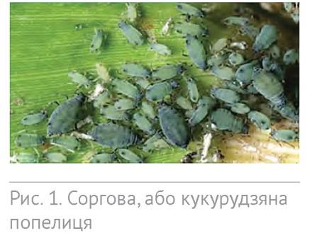 У соргової, або кукурудзяної попелиці подовжено-овальне тіло, сіро-зелене, обпилене, голова, вусики і ноги чорно-бурі, вусики коротші за половину довжини тіла, трубочки короткі (рис. 1). У квітні-травні заселяє озимі і ярі колосові, концентрується в пазухах верхніх листків. На початку червня мігрує з колосових злаків на кукурудзу, де утворює численні колонії на волотях і верхніх листках. Оптимальні для життєдіяльності умови — температура +28...32 °С і вологість 60-70 %. За температури нижче за +15 °C зростання популяції істотно сповільнюється. Дає 10-12 поколінь на рік. Особливо сильно шкодить у південних степових посушливих регіонах. Переносить вірус мозаїки кукурудзи.