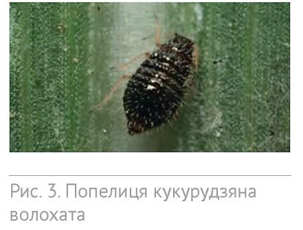 Попелиця кукурудзяна волохата середнього розміру (довжина тіла — 1,6-2,2 мм), яйцеподібна, блискучо-чорна або чорнувато-бура, з жовтими ногами, короткими вусиками та соковими трубочками; тіло вкрите короткими щетинками (рис. 3). У червні колонії попелиць найчисельніші на кукурудзі у згорнутих верхівкових листках, на волотях, стеблах.