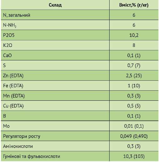 Таблиця 1. Склад спеціального концентрованого добрива Новалон Сід трітмент