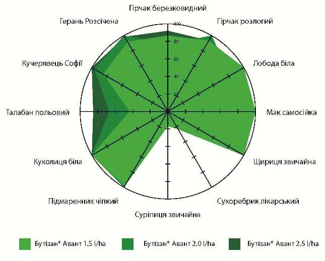 Рис. 4. Ефективність Бутізан® Авант при досходовому застосуванні