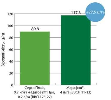 - економія на засобах захисту і їх внесенні — одноразове внесення гербіциду Марафон® дозволяє ефективно проконтролювати падалицю озимого ріпаку, в тому числі виробничої системи Clearfield®, захистити посіви від однорічних дводольних і, що досить важливо, однорічних злакових бур’янів в осінній і весняний періоди, тоді як при використанні традиційних гербіцидів для досягнення аналогічної цілі необхідно було б провести три обприскування трьома різними препаратами;