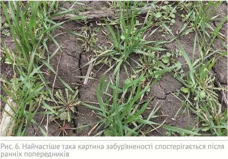 Шкоду від бур’янів в осінній період теж недооцінено. Найчастіше з осені сильно забур’янюються поля пшениці і ячменю ранніх термінів сівби після ранніх попередників: гороху, ріпаку, зернових тощо. На таких посівах переважатимуть зимуючі й озимі види бур’янів. На посівах після соняшнику переважатиме падалиця соняшнику, яка завдає істотної шкоди вже з осені, а до настання природних заморозків рослини соняшнику можуть навіть сягнути фази 5-6 листків. На посівах після кукурудзи, сої, цукрових буряків здебільшого немає зимуючих видів бур’янів, на таких полях переважають ярі види, які сходять навесні.