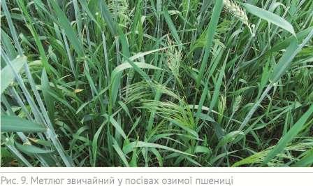 Восени на посівах зернових шкоди завдають як дводольні, так і злакові бур’яни. Метлюг звичайний — найбільш шкідливий озимий бур’ян, поширений у зоні Центрального і Західного Лісостепу. Його сходи з’являються зазвичай разом із появою сходів пшениці озимої. З численних досліджень відомо, що наявність 1 шт./кв. м метлюгу звичайного спричиняє втрати врожаю пшениці 17 кг/га (Веселовський І.В. та ін., 1988).