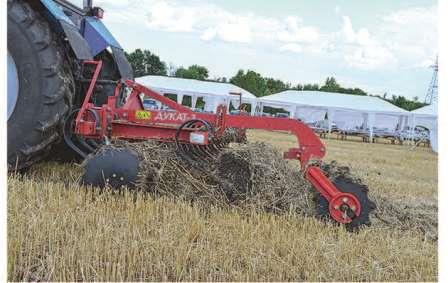 Під час заходу відвідувачі оцінили й роботу альтернативного знаряддя для вирівнювання поля — стерньовий культиватор «Шилінг 4,0» із шириною захвату 4 м, який агрегатується з тракторами потужністю 150-200 к.с. Глибина обробітку легко виставляться у межах 25 см і тримається постійною завдяки опірним колесам. Спочатку працює два ряди лап, які розпушують ґрунт, утворений ними земляний гребінь усувають розташовані під певним кутом диски, а каток остаточно подрібнює рослинні залишки та ущільнює ґрунт. «Цією машиною варто працювати в два етапи, — відзначає Олексій Гриненко. — На першому для закриття вологи та провокування росту падалиці провести обробіток по стерні на глибину 5-7 см, а за 2-3 тижні, після сходу падалиці, обробити на глибину 15-20 см. З того часу поле готове під посів. Перевагою Шилінга перед більш продуктивними і менш енерговитратними дисковими боронами на жорсткій стійці, якими все частіше проводять перший обробіток, є те, що він лишає по собі рівне посівне ложе без підплужної підошви».