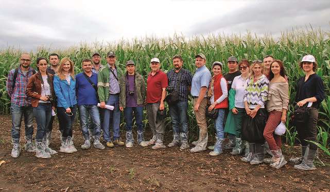 Цікава й дуже інформативна бесіда продовжилася на дослідних ділянках компанії, де журналісти побачили справжні кукурудзяні джунглі — комерційні, зокрема, вже популярний у наших виробників AQUAmax, та нові гібриди, які потім надаватимуть для державної реєстрації. А особливо завзяті колеги мали змогу відчути себе справжніми селекціонерами й оцінити потенціал представлених гібридів за певними ознаками.