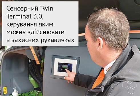 У верхній частині панелі управління розташований багатофункціональний термінал Twin Terminal 3.0 — складова Comfort-пакету для управління обприскувачем. Comfort-пакет має багато корисних програм: автоматична зупинка всмоктувального заповнення, регульована потужність міксера відповідно до кількості робочого розчину (зменшення обертів паралельно об’єму р.р. до повної зупинки), автодинамічне керування міксером: самостійне зниження його обертів під час внесення великої норми р.р., автоматичне очищення з дистанційним керуванням із кабіни трактора тощо.