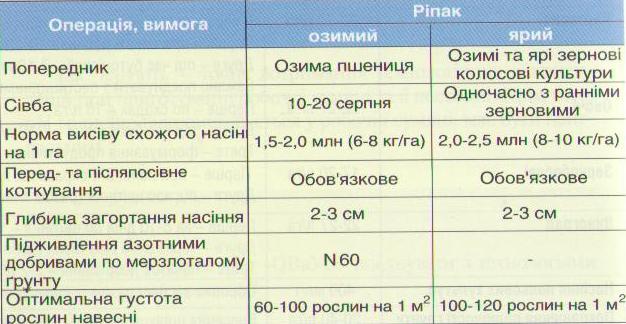 Таблиця 2. Технологічна схема вирощування ріпаку озимого та ярого