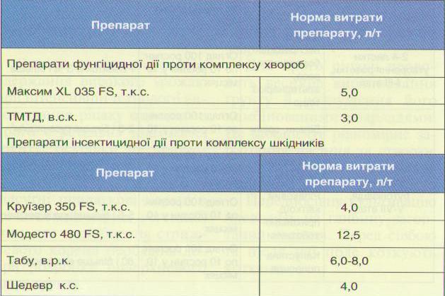 Для сівби використовують високоякісне насіння, яке за сортовою чистотою, енергією проростання, а також за схожістю відповідає державному стандарту. Препарати фунгіцидної дії (вітавакс, максим ХL 035 FS, ровраль ФЛО, роялфло) захищають висіяне насіння, проростки та сходи від пліснявіння, чорної ніжки, пероноспорозу, альтернаріозу, білої та сірої гнилей, фомозу та інших хвороб; інсектицидної дії - захищають сходи від пошкоджень капустяними блішками, ріпаковим квіткоїдом та капустяної попелиці (див. табл. 6).