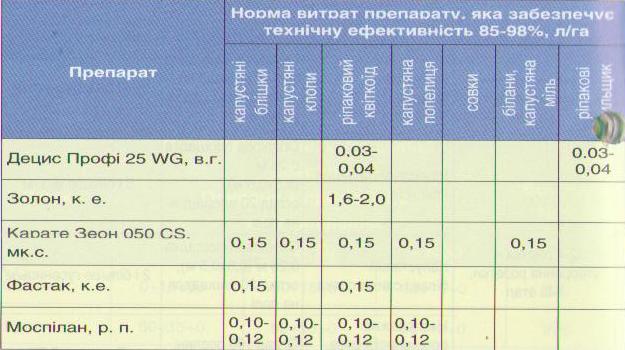Таблиця 7. Ефективні норми витрати препаративних форм інсектицидів