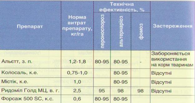 Таблиця 8. Норма витрати та технічна ефективність фунгіцидів
