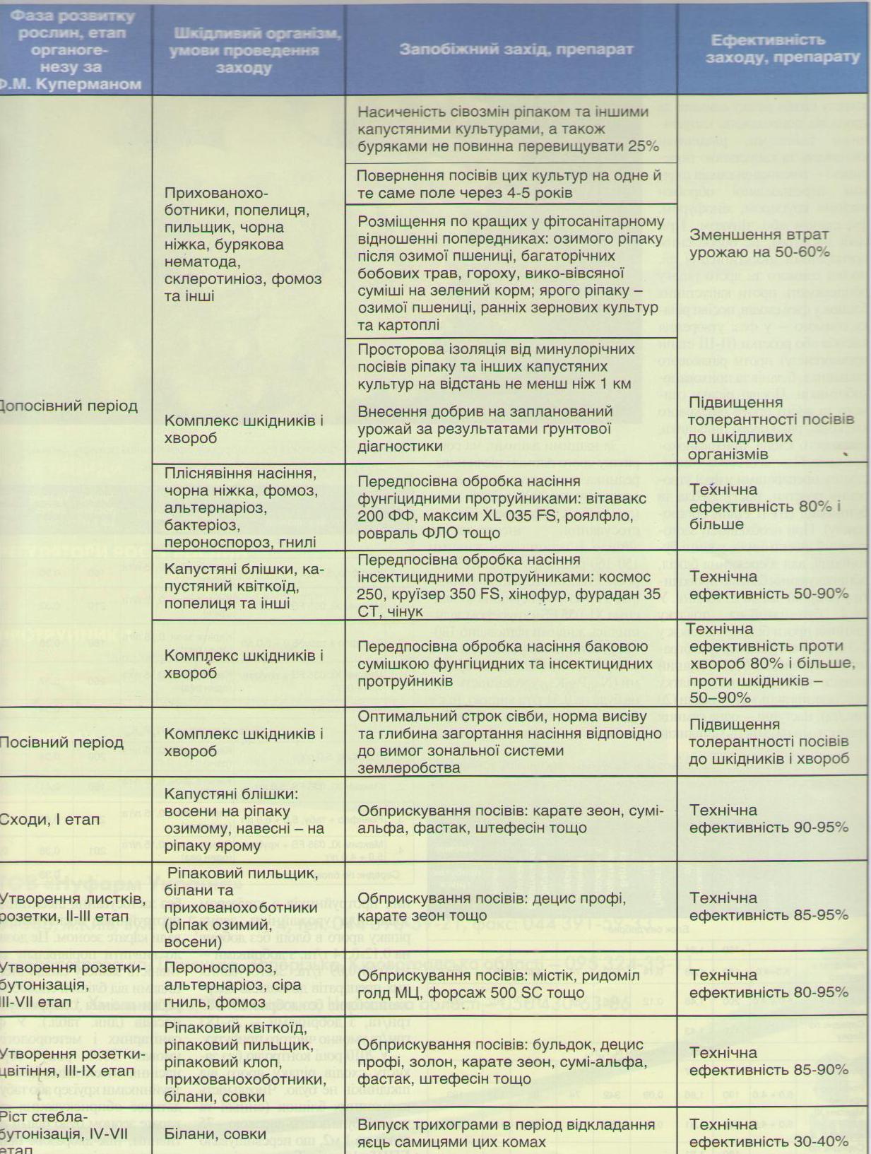 Таблиця 9. Технологічна схема системи фітосанітарної безпеки ріпаку озимого та ярого