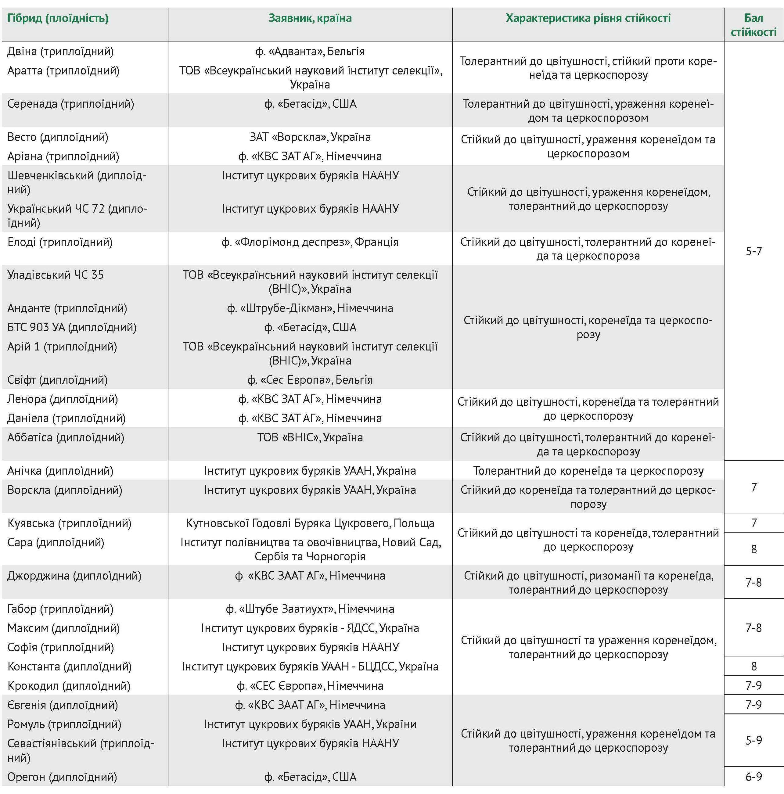 У практиці вітчизняного буряківництва є сорти та гібриди, що мають підвищену стійкість проти шкідників і хвороб. Проти бурякової нематоди — Білоцерківський однонасінний 45, Ювілейний; проти пероноспорозу — Ялтушківський однонасінний 64, Білоцерківський ЧС 51, Білоцерківський ЧС 57, Київський ЧС 62; проти церкоспорозу — Київський ЧС 62, Верхнянський ЧС 63, Білоцерківський ЧС 32, Білоцерківський ЧС 57, Іванівський ЧС 33, Слов’янський ЧС 94; проти борошнистої роси — Ялтушківський однонасінний 30, Український ЧС 70, Слов’янський ЧС 94; проти кагатної гнилі — Іванівський ЧС 33. Перелік стійких гібридів проти основних хвороб наведено в таблиці 6.