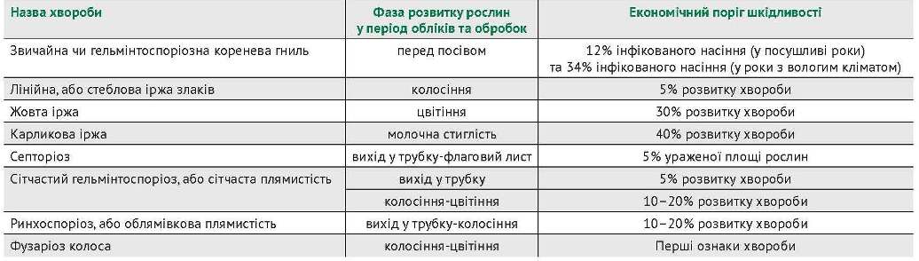 Таблиця 1. Економічні пороги шкідливості хвороб