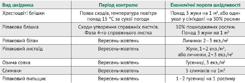 Періоди контролю та економічні пороги шкідливості шкідників ріпаку