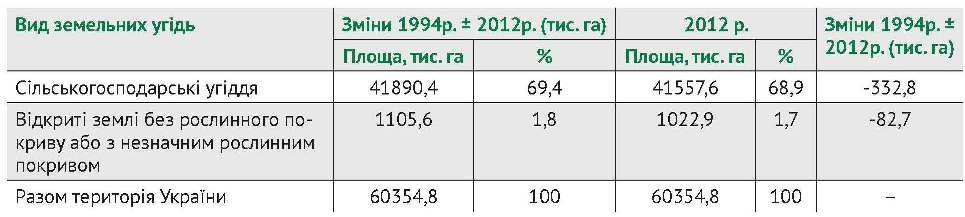 Таблиця. Земельний фонд України без належного рослинного покриву