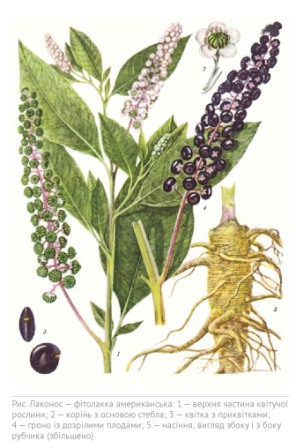 Серед 35 видів роду лаконосових (родина лаконосових), які зростають у тропіках Америки і Африки, а також у Південній і Східній Азії, широко відомий лаконос американський (табл. 1). « Росії він відомий як жирна трава, на Кавказі - чібебахарія або чічапура, в Україні, Молдові, країнах Балтії - американський могутній корінь.