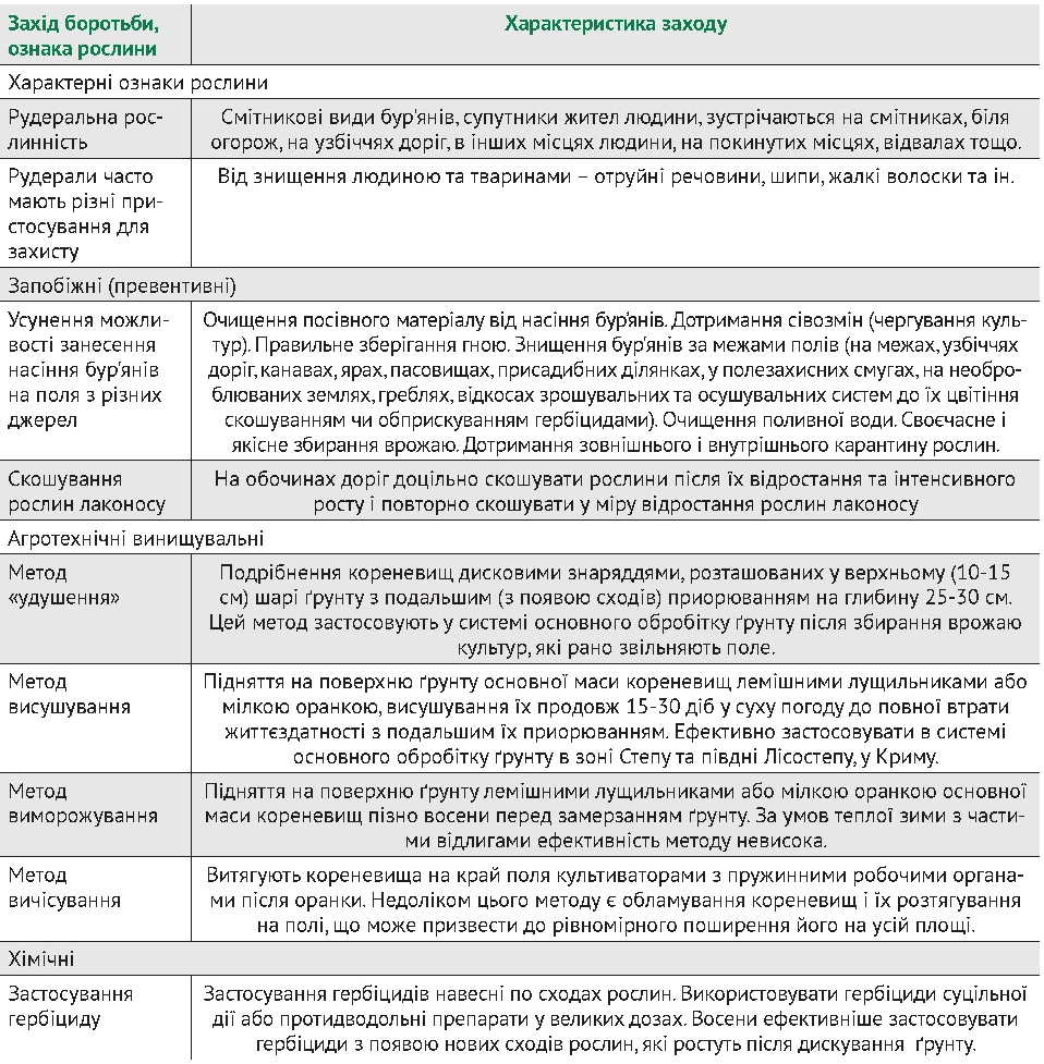 На полях, городах, дачних ділянках необхідно грамотно й ефективно контролювати чисельність цих рослин у нішах агрофітоценозів. Для цього необхідні знання як про саму рослину, так і про заходи боротьби з нею як зі злісним бур'яном (табл. 2).