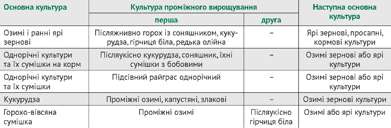 Таблиця 3. Біологічна сумісність основних культур і культур проміжного