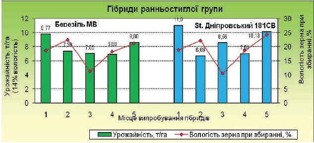 У якості стандартів були використані ранньостиглий гібрид Дніпровський 181 СВ (Україна), середньоранній гібрид Сплендіс (Франція) і середньостиглий Нінфея (Франція).