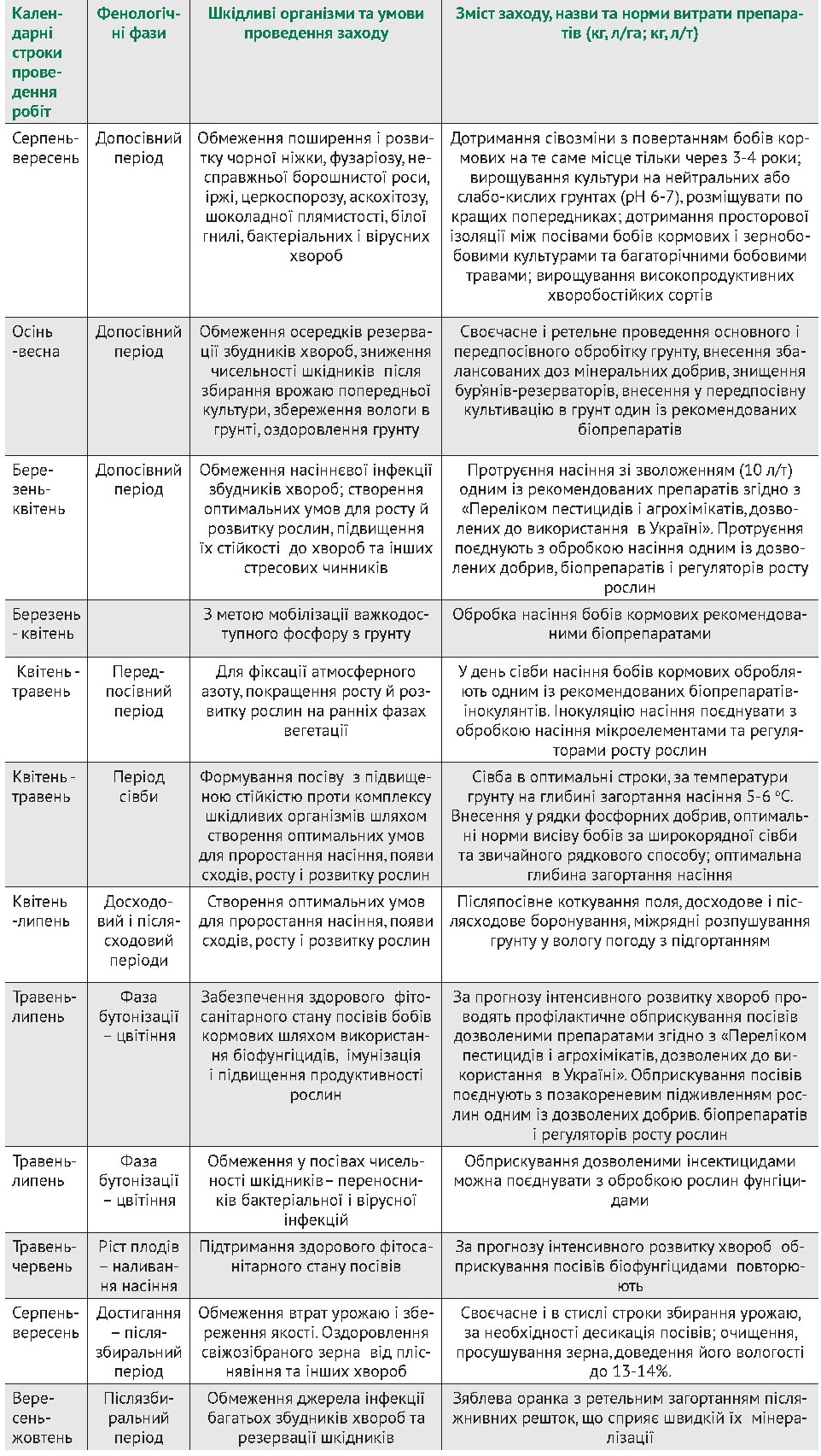 Дотримання просторової ізоляції між посівами бобів кормових і зернобобовими культурами та багаторічними бобовими травами. Насіннєві посіви повинні бути не ближче 1 км від товарних, що стримує перенос аерогенної інфекції багатьох збудників хвороб.