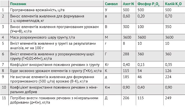 Таблиця 4. Розрахунок норм добрив для одержання 500 ц/га коренеплодів цукрових буряків