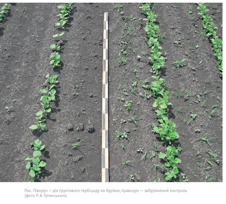 На окрему увагу заслуговує комбінований двокомпонентний гербіцид — імазетапір + хлоримурон-етил. За його ґрунтового внесення зменшення загальної кількості і сирої маси бур’янів у посівах сої становило відповідно 68 і 81%, порівняно з контролем (забур’янений посів). Урожайність у варіанті з застосуванням гербіциду з такими діючими речовинами була на одному рівні з ручним прополюванням посіву.