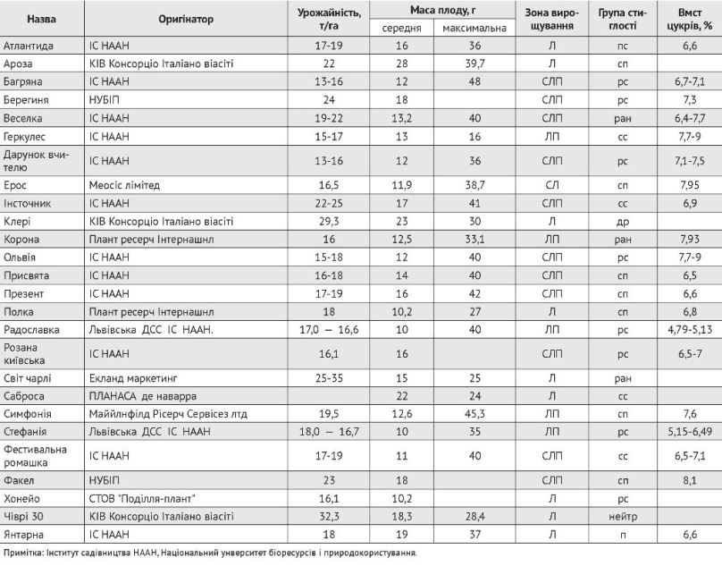 Характеристика сортів полуниці, занесених до Реєстру сортів рослин,